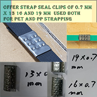Offer strap seal clips of 0.7 x 13 16 and 19 mm used both for PET and PP strapping